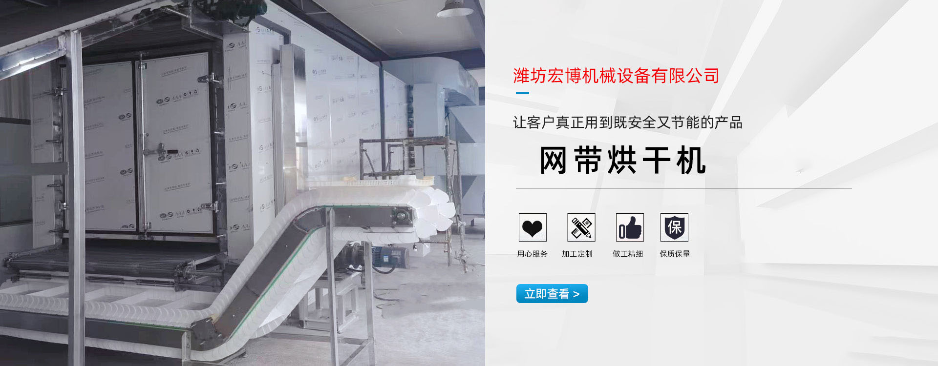 宏博公司主要產(chǎn)品有:網(wǎng)帶烘干機(jī)、食品烘干機(jī)、滾筒烘干機(jī)、隧道窯、烘干箱、燃?xì)鉄犸L(fēng)爐、高大車(chē)間供暖設(shè)備、礦用防爆電加熱器等。